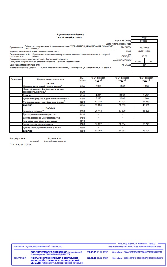 Фирменное наименование юридического лица: Управляющая компания «Комфорт Лыткарино»